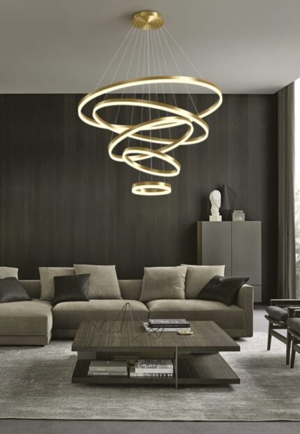 The Modern Luxury Italian Style Three Rings Chandelier features adjustable rings, sleek black finish, and switchable LED lighting modes. A perfect statement piece for luxury living rooms, dining spaces, and modern interiors.