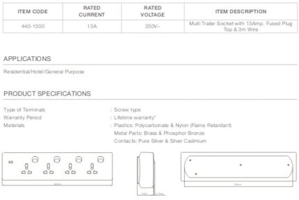 Multi Socket Extension, 13A with 3m wire, designed for safe and reliable power distribution. Backed by a 5-year warranty for long-lasting performance.