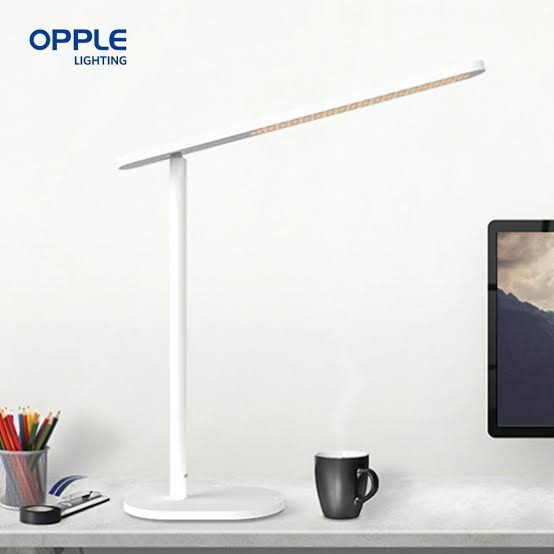 Opple touch-dimmable study lamp with a sleek matte white ABS body and adjustable height. Features USB rechargeable battery, 4000K natural light, and 4W LED with touch control brightness—ideal for study tables, bedside use, and office desks.