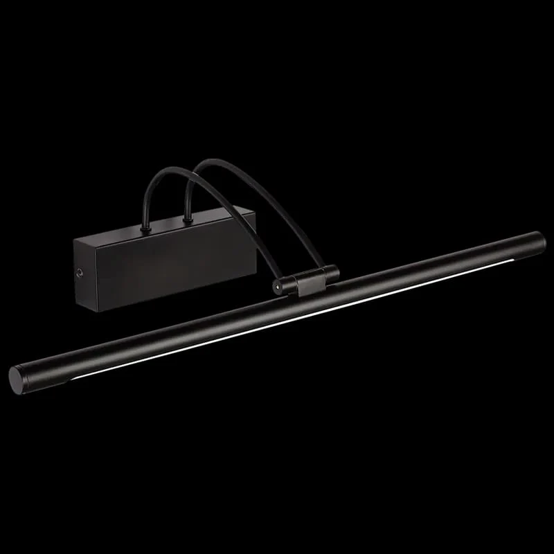 Minimalist matte black LED mirror and picture light (575mm) with a durable aluminum body and soft polycarbonate diffuser. Features a built-in 10W LED with switchable color modes (3000K / 4000K / 6000K), high CRI >90, and 180° wide beam spread. Perfect for bathroom mirrors, dressing areas, picture galleries, and modern living rooms.