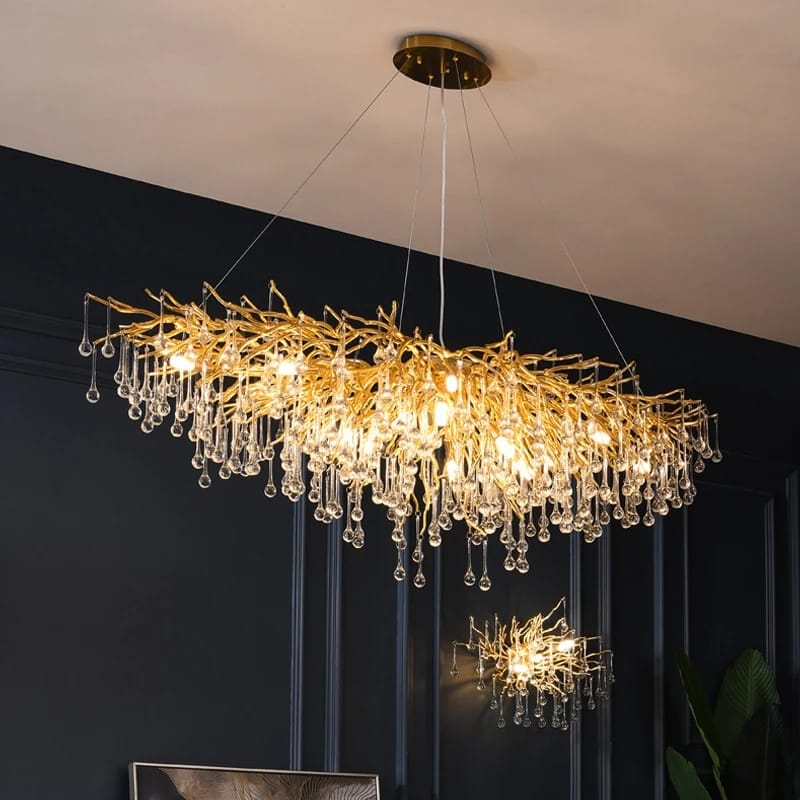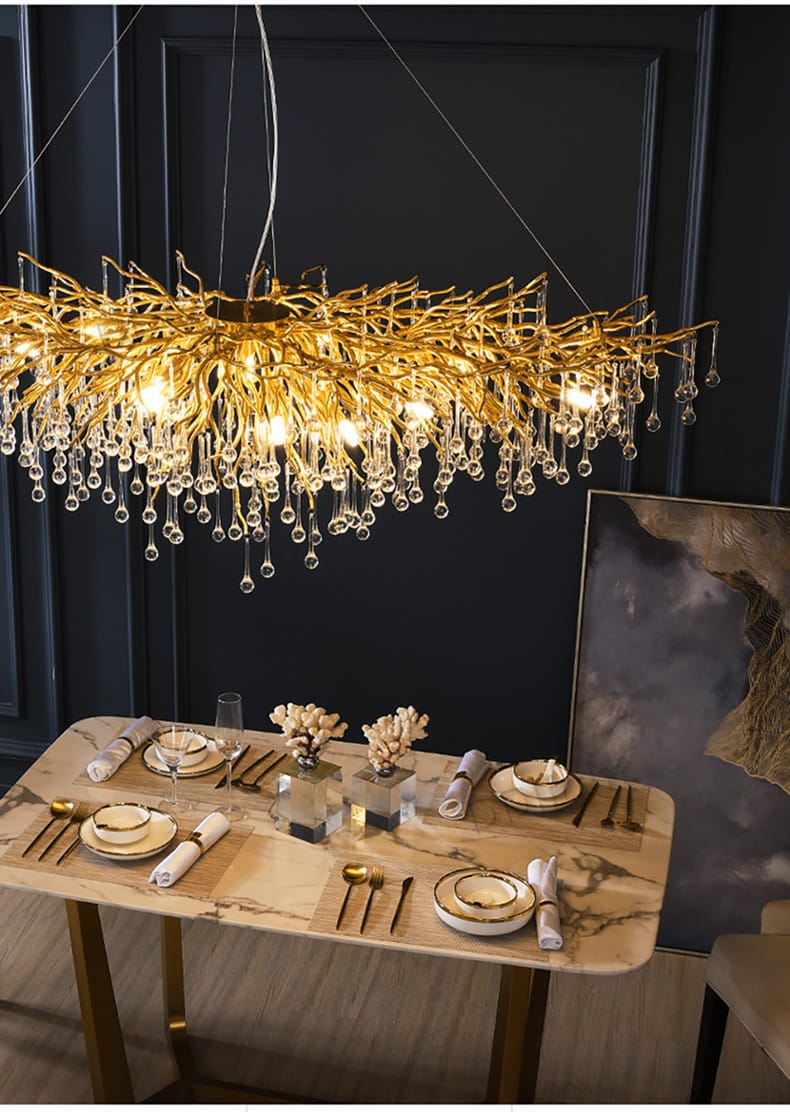 The Artistic Modern Gold Luster Crystal Chandelier combines handcrafted artistry with modern elegance. With its golden tree-branch structure and water-drop crystals, it creates a breathtaking centerpiece that adds luxury and warmth to any interior.