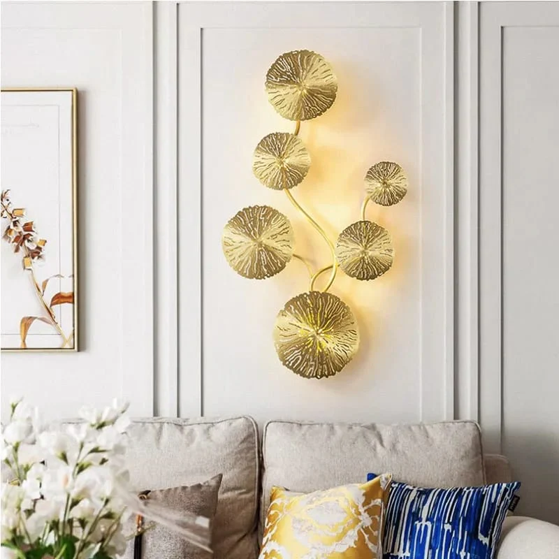 Luxurious stainless-steel lotus leaf light with iron body in a premium electroplated gold finish. Features six G9 LED bulbs (included) totaling 18W, delivering warm white 3000K illumination with CRI >90. Measuring 88 × 42 cm, it’s perfect for living rooms, dining areas, bedrooms, corridors, and study spaces. Supplied as a complete fixture with bulbs and mounting accessories.