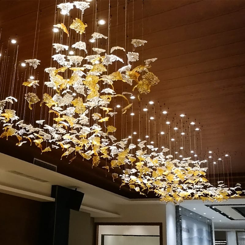 Luxury Handmade Glazed Glass Maple Leaf Chandelier