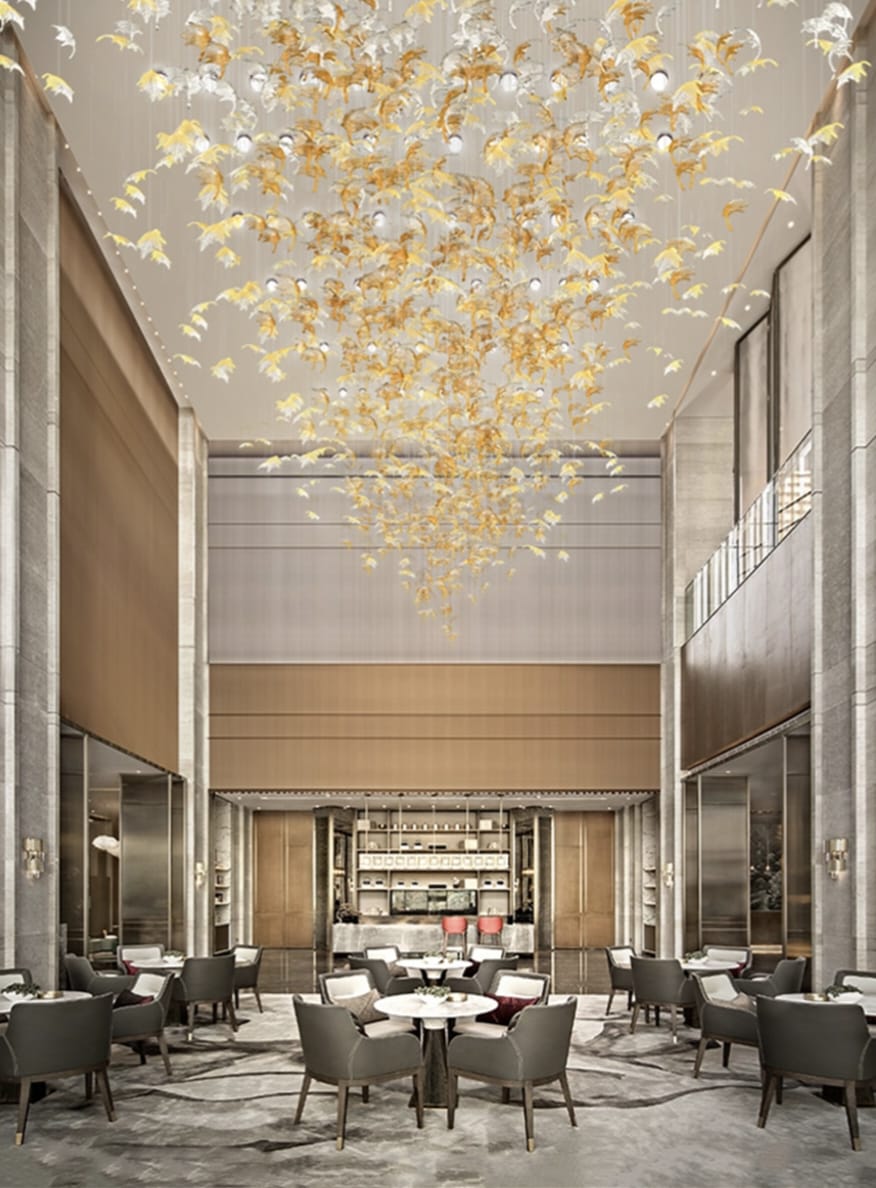 Elegant chandelier with high-class glazed glass and gold accents, featuring 100 maple leaves (adjustable). Perfect for living rooms, bedrooms, kitchens, and offices.