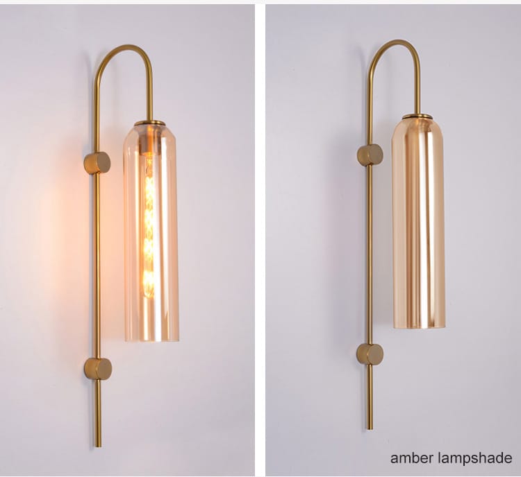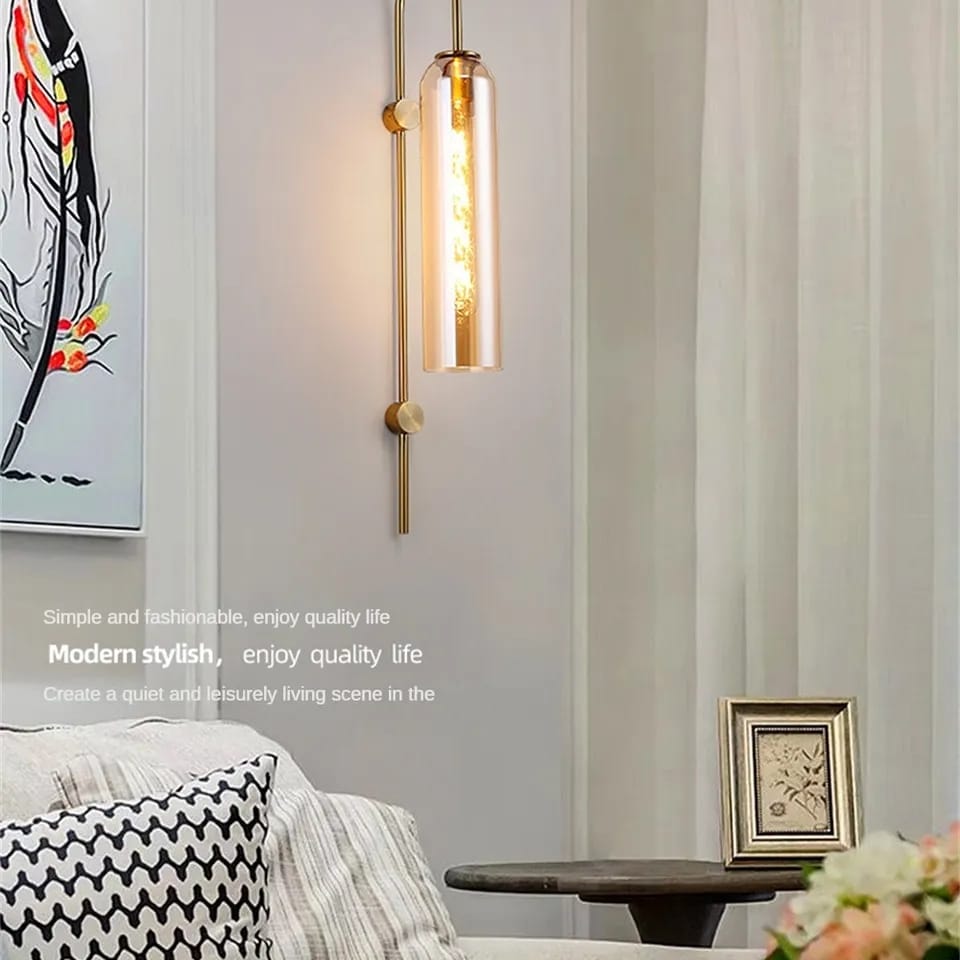 Nordic-style modern wall lamp featuring an antique brass electroplated metal body and champagne glass diffuser. Comes with an E27 base filament LED bulb (8W) that adds a warm, stylish glow—perfect for bedrooms, living rooms, and drawing rooms.