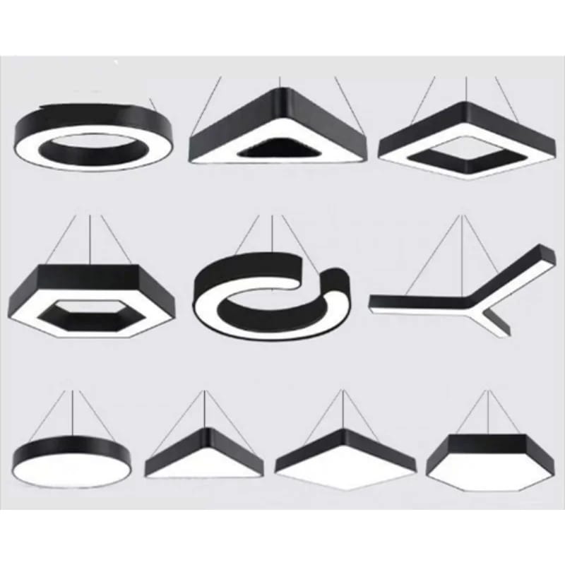 Modern linear LED light with aluminum housing and acrylic milky diffuser. Available in 2-inch or 3-inch widths with customizable sizes and multiple finish options including black, white, red, metallic gold, and metallic silver. Powered by high-quality LED strips (50W+), offering 3000K, 4000K, or 6500K light output with CRI >80. Perfect for offices, meeting rooms, kitchens, restaurants, and reception areas.