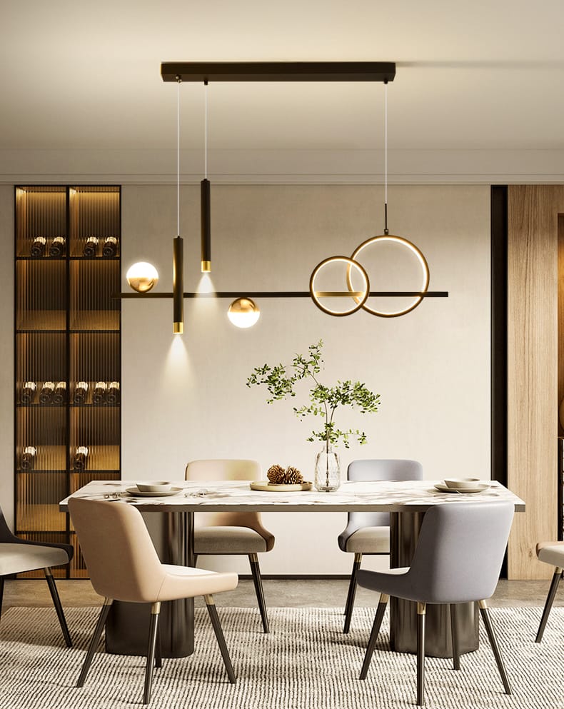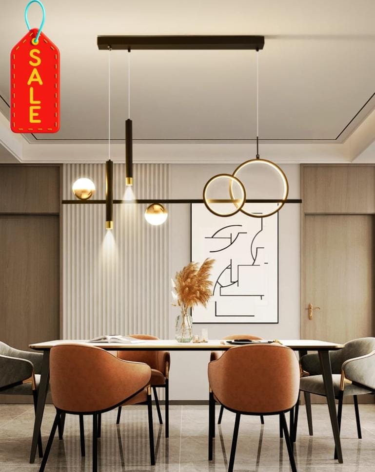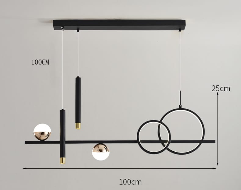 The Modern Black & Gold Minimalist LED Chandelier features a sleek matt black finish with gold-plated accents, paired with an acrylic diffuser for soft and even lighting. With adjustable height and three switchable light modes, it’s perfect for adding elegance and functionality to living rooms, dining areas, kitchens, and office spaces.